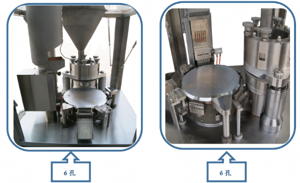 5、配備粉體物料充填機構,使粉體物料經過膠囊填充料倉裝置連續(xù)均勻強制下料至膠囊填充區(qū);